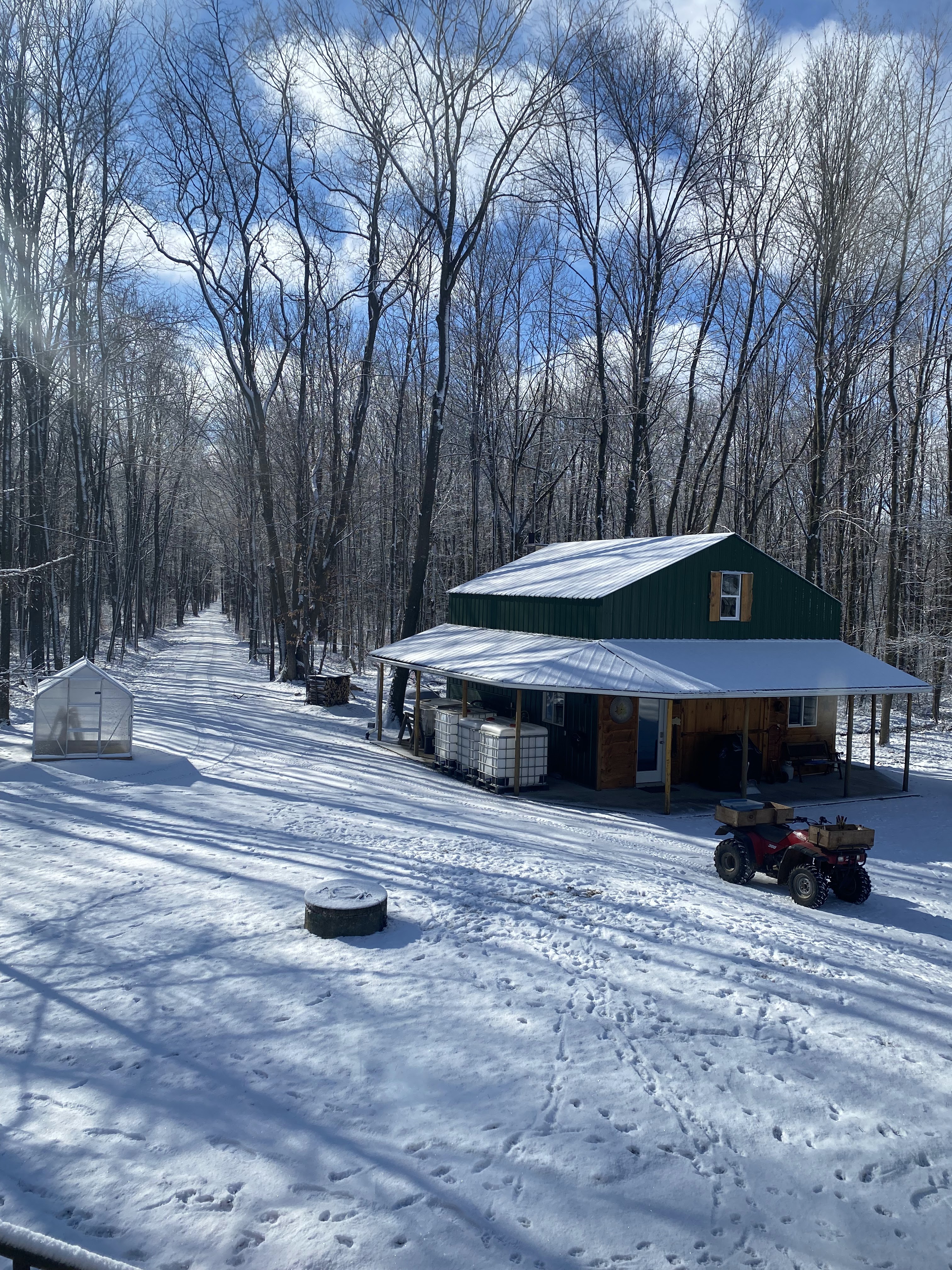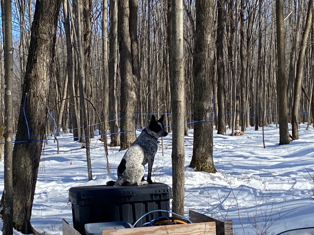 Well, I think it’s safe to say that this winter (with no snow) is so far the most unusual! It is February 4th and after a week of scrambling the hard work is done and all 800 taps are drilled in, lines are sanitized and sap gathering has begun. We started Monday January the 28th, and the reason for that of coarse is the forecast was favorable to begin. None of us “sappers”want to miss an early run! Today yielded the first 450 gallon run. Never did I think things would ever come alive this soon. We’ll see what happens when March gets here.